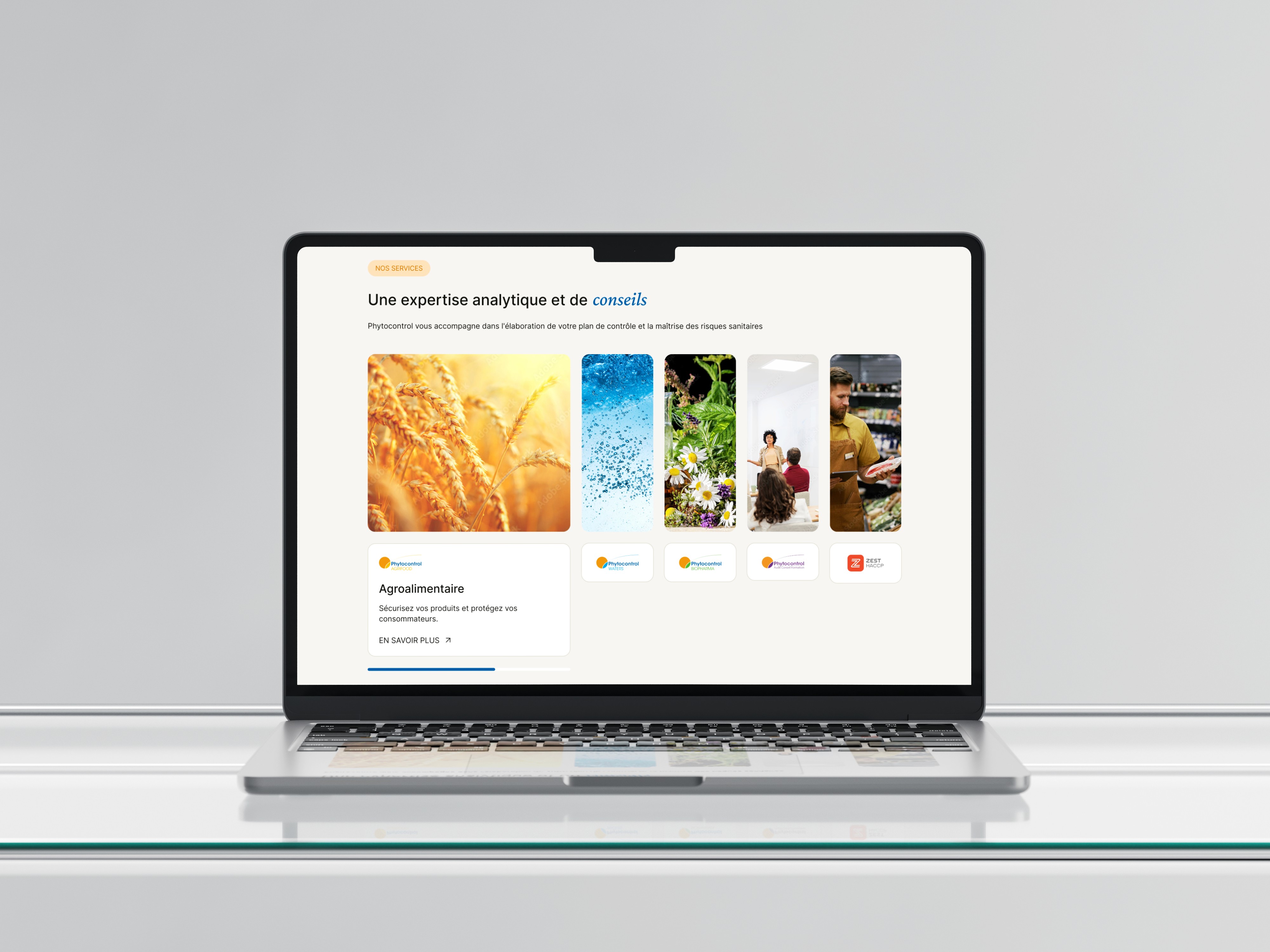 Le défi majeur de Phytocontrol résidait dans la lisibilité et la compréhension de ses services. Face à un catalogue d’offres dense et très technique, le site peinait à guider les visiteurs vers les bonnes expertises et à générer des prises de contact qualifiées. L’enjeu était donc de clarifier l’offre, structurer l’information et transformer le site en un véritable outil d’aide à la décision pour les clients B2B.